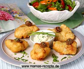 Diese Hähnchenfleischstücke in Bierteig gehüllt frittiert ergeben im Geschmack zartes Hähnchenfleisch in knuspriger Teighülle zu welchen man einen cremigen Frischkäsedip mit frischem Schnittlauch verfeinert und einen Salat genießen kann. Aber auch ohne Dip zusammen mit einer Gemüse- und kleinen Kartoffelbeilage schmeckt dieses Gericht sehr fein.