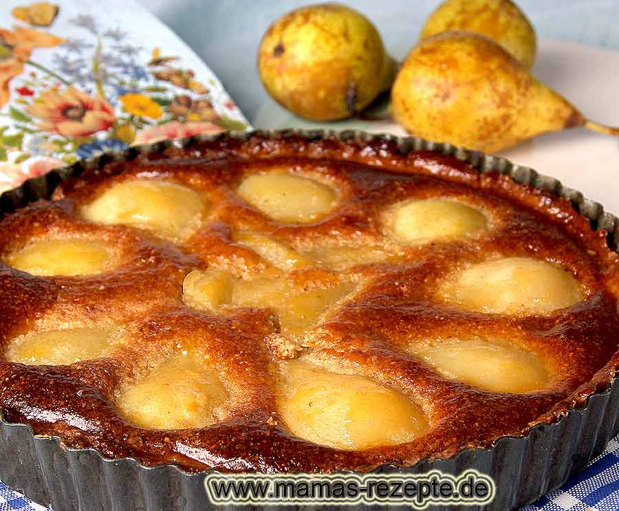 Für noch mehr Geschmack und einen schönen Glanz wird diese Tarte gleich nach dem Backen mit leicht verdünnter Aprikosenkonfitüre bestrichen und erst nach dem vollständigen Abkühlen als saftige Birnen Tarte mit oder ohne Schlagsahne serviert.