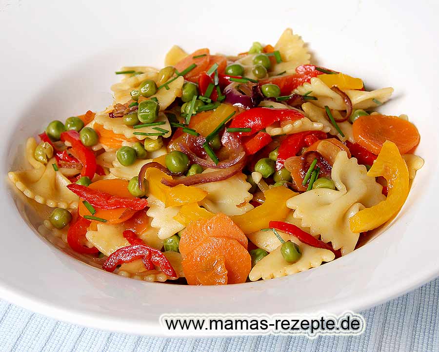 Bei 2 Personen, enthalten 1 Portion Bunte Gemüse Nudelpfanne ca. 330 kcal und ca. 6 g Fett