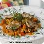 Nun nacheinander in einer ausreichend großen Bratpfanne in heißem Öl zuerst die Filetscheiben auf beiden Seiten braten, aus der Pfanne nehmen, auf einem vorgewärmten Teller abgedeckt warmhalten.