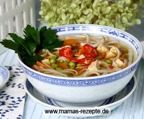 Diese auf asiatische Art zubereitete Nudelsuppe mit Tofu ergibt einen scharf-würzigen Suppentopf für 4 Personen.