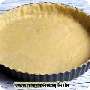 Den in der Backform liegende Mürbeteigboden mit einem ausreichend großen Stück Backpapier so belegen, dass das Papier weit über den Backformrand hinausragt. Auf das Backpapier etwa 400 - 500 g getrocknete Hülsenfrüchte (Erbsen, Linsen oder Bohnen) aufstreuen, dabei die Hülsenfrüchte besonders gut bis an den Rand verteilen, was im Endeffekt später einen schönen gerade geformten Kuchenrand ergibt.