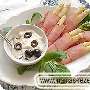 Eine Portion Schinkenrollen mit Olivensoße, ca. 180 kcal und ca. 11 g Fett