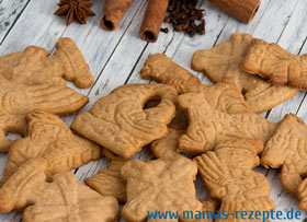 Als letzte Möglichkeit Spekulatius zuzubereiten ist das einfache Ausstechen mit Ausstechformen. Man erhält auf diese Weise aber leider keine Reliefstruktur auf den Spekulatius. Dafür kann man die Kekse bei dieser Variante mit Nüssen oder anderem Dekomaterial verzieren.